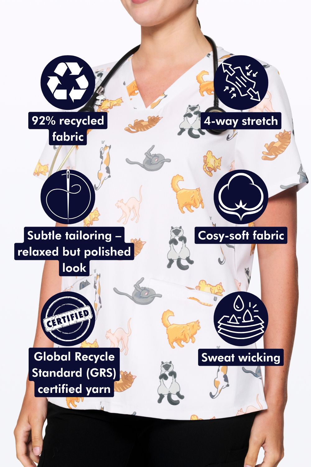 Introducing Lazy Cats — the scrub top that’s cuter than a kitten, softer than paw-jamas and guaranteed to bring the giggles.