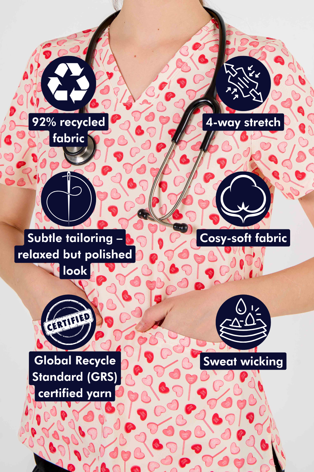 Stick it to the man all day long in this groovy, 60s-inspired scrub top made for
