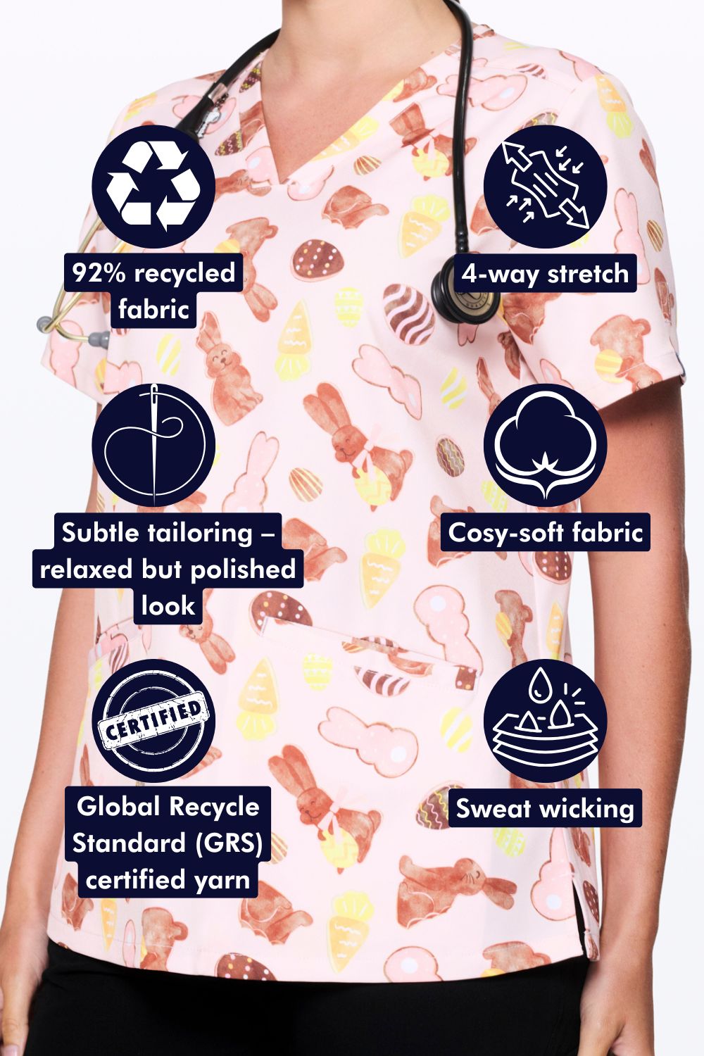 Yummy Bunnies Women’s 3-Pocket Scrub Top